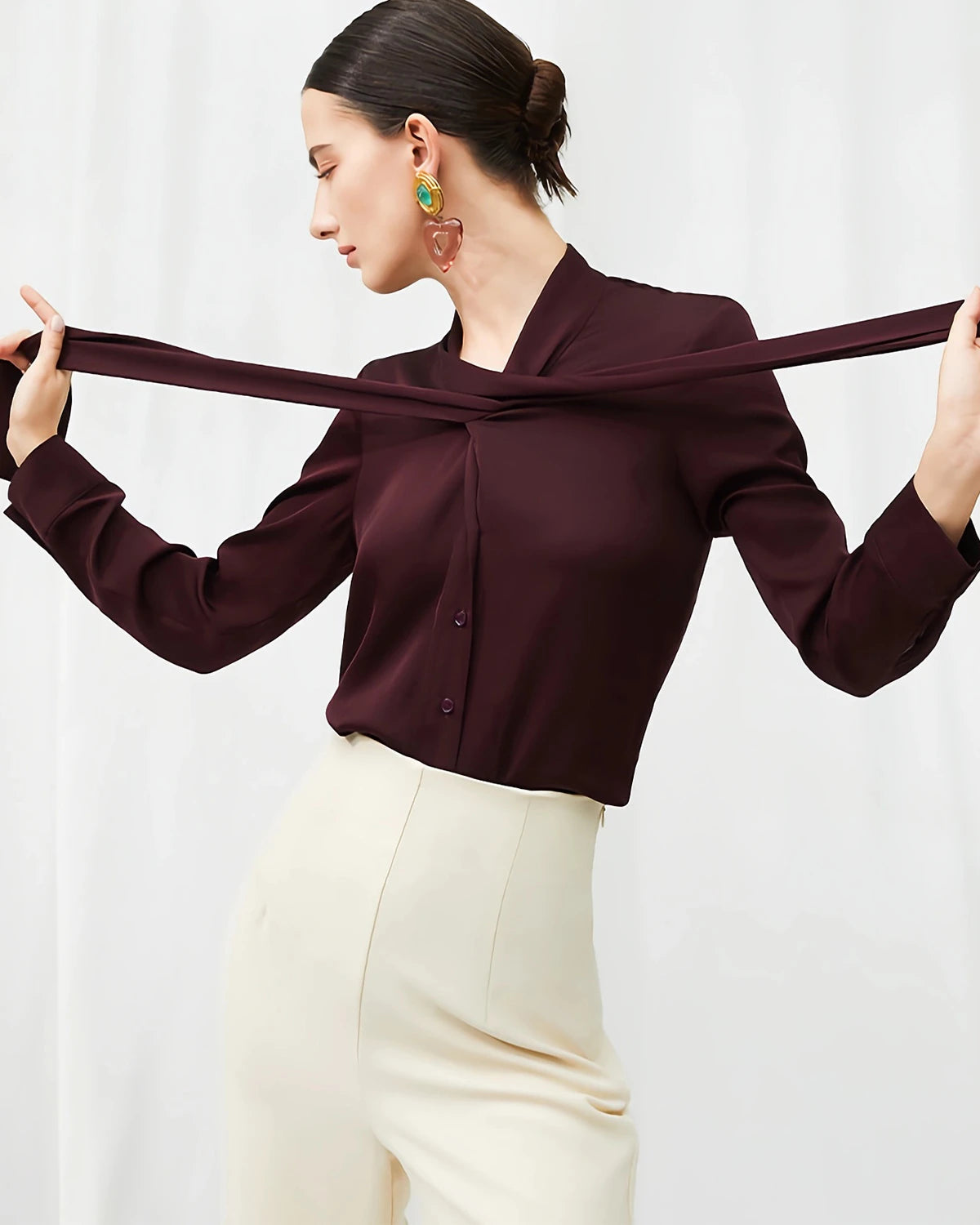 30 Momme Silk Tie-Front Long Sleeve Blouse