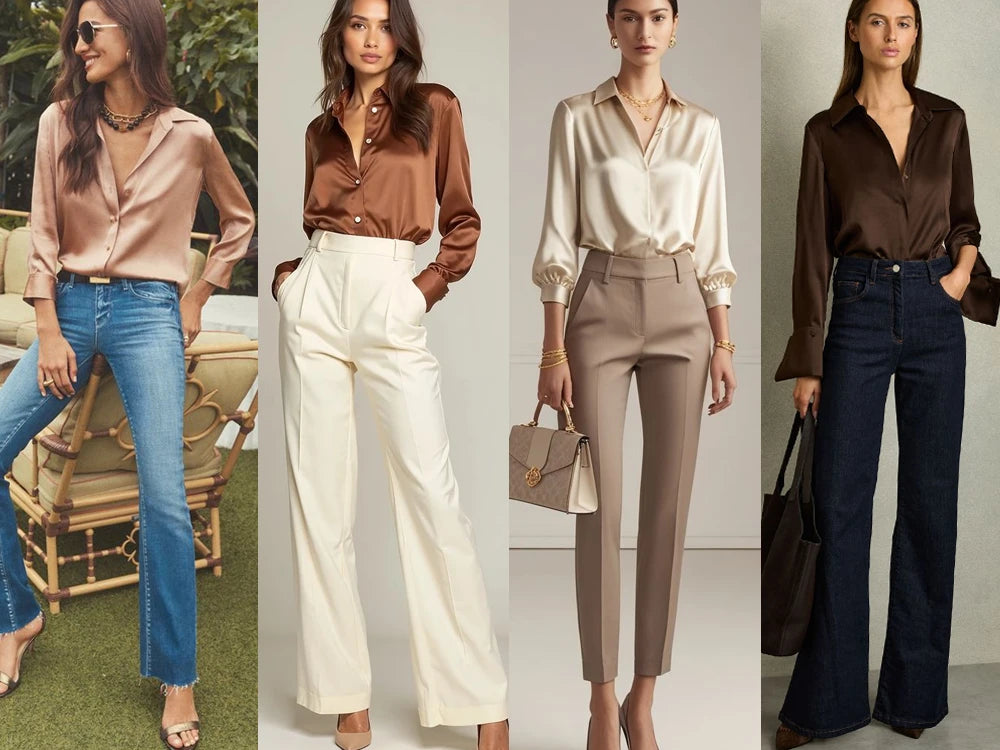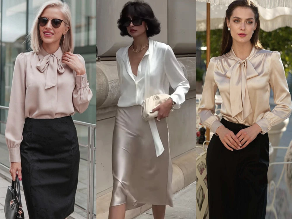 Pair it with slim-fit trousers or pencil skirts, silk skirts for a feminine, sophisticated style, ideal for business meetings or evening events.