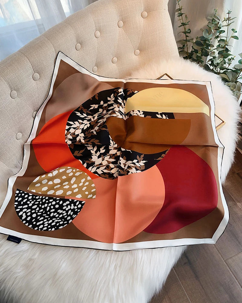 Embrace seasonal elegance with the Autumn Leaf Shadow Geometric Silk Scarf. Designed in a versatile 65x65cm size, this single-sided printed silk crepe de chine scarf combines subtle leaf shadow patterns with modern geometric shapes. Its soft drape and matte texture make it an ideal fall and winter silk accessory, adding sophistication to both casual looks and professional business attire.