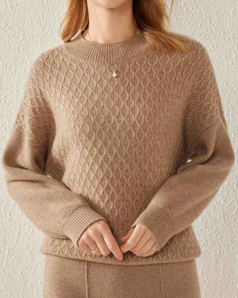 Add a touch of sophistication to your wardrobe with this Women's Cashmere Sweater, featuring a beautiful textured knit pattern that adds depth and visual interest. Crafted from premium cashmere, this sweater combines warmth with a luxuriously soft feel. The classic crew neckline and ribbed cuffs and hem offer a flattering fit and refined finish. The intricate knit design creates a subtle yet stylish look, making it perfect for both casual and more polished outfits. Whether paired with jeans or a skirt, this sweater is a versatile piece for year-round wear.