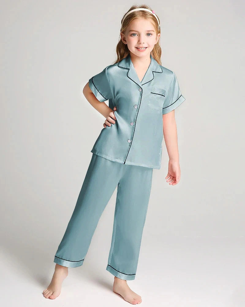 Unisex Kids Short Sleeve Silk Pajamas Set