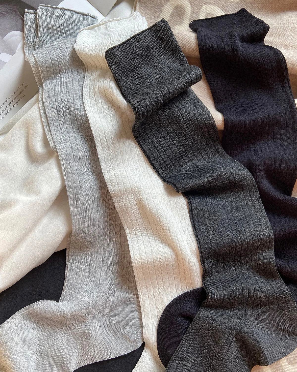 Women Sheer Cashmere Modal Blend Calf Length Socks
