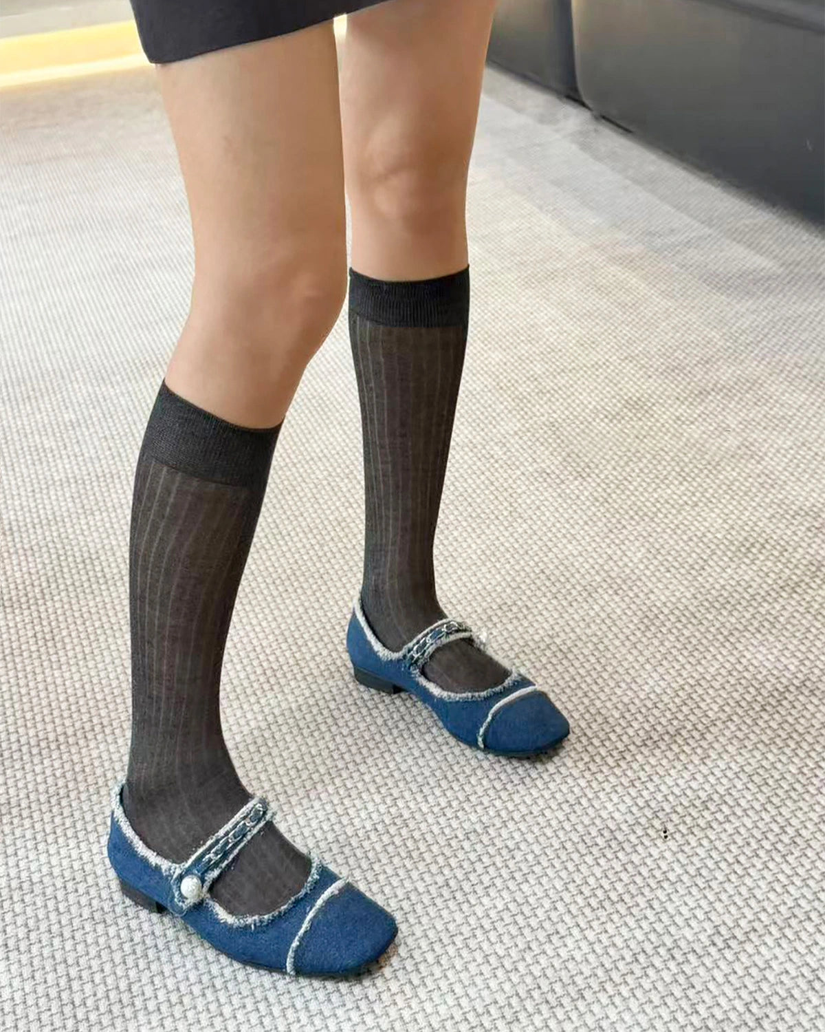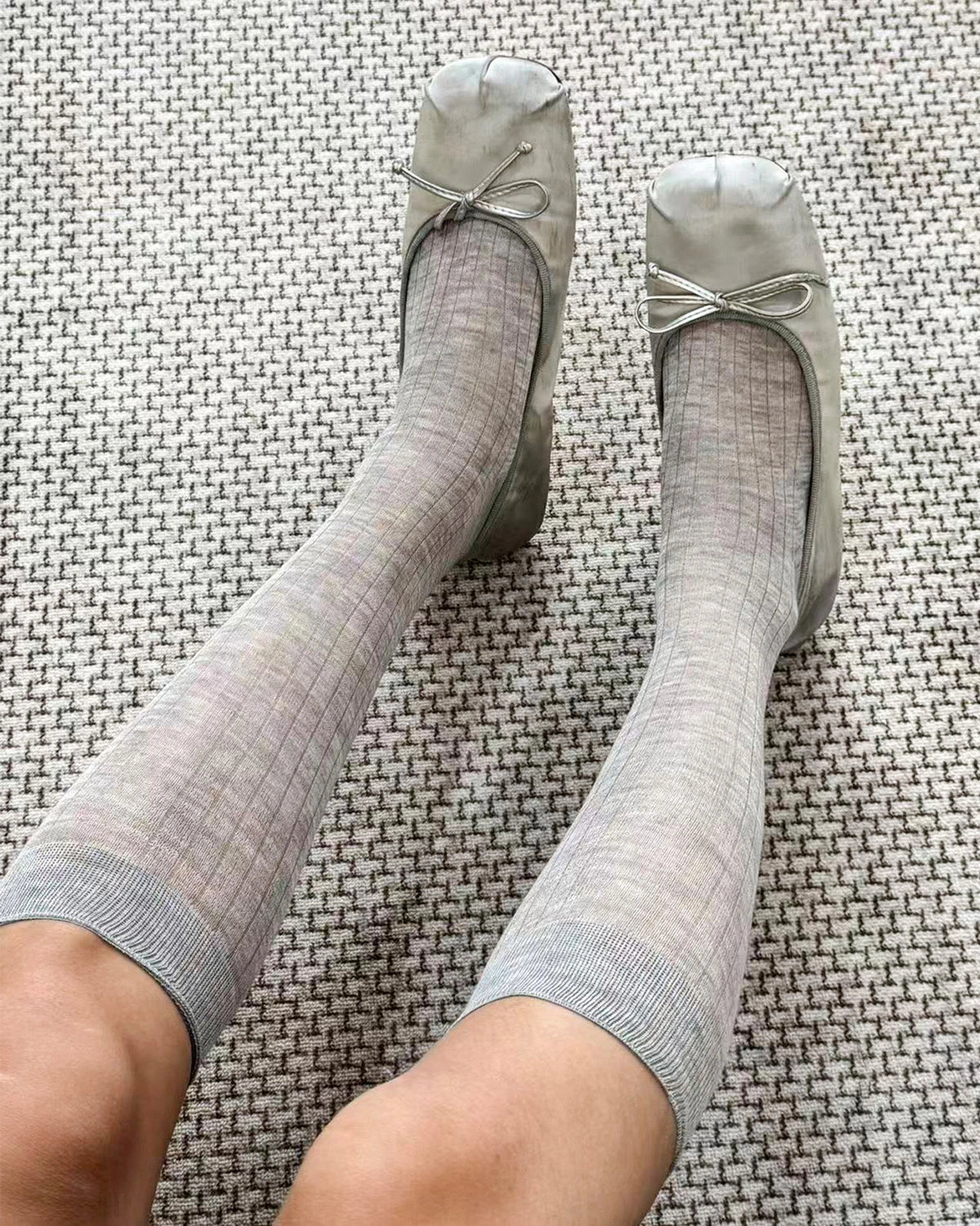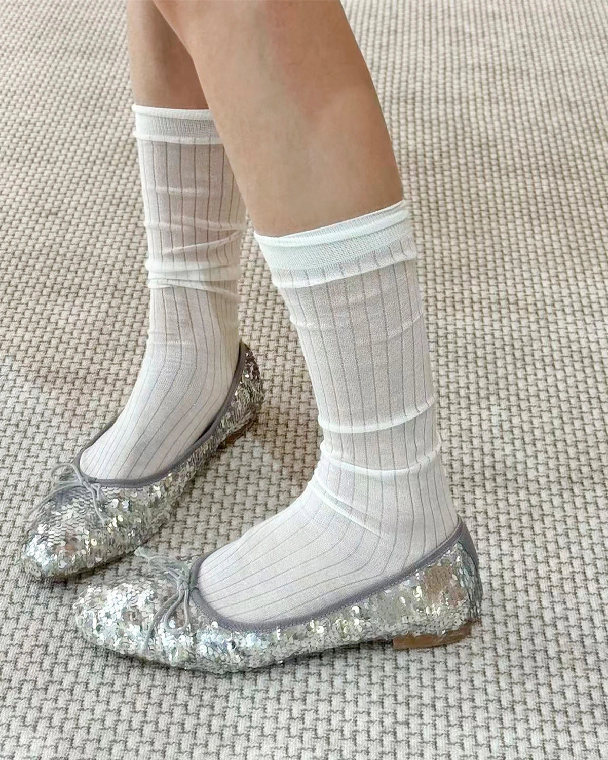The semi transparent knit creates an airy, refined appearance that adds dimension to modern outfits without bulk. The calf length silhouette makes these socks easy to style with loafers, ballet flats, sneakers, and ankle boots.
