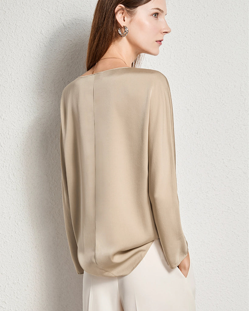 A refined silk blouse featuring a soft draped cowl neckline, designed to bring effortless sophistication to any wardrobe.
