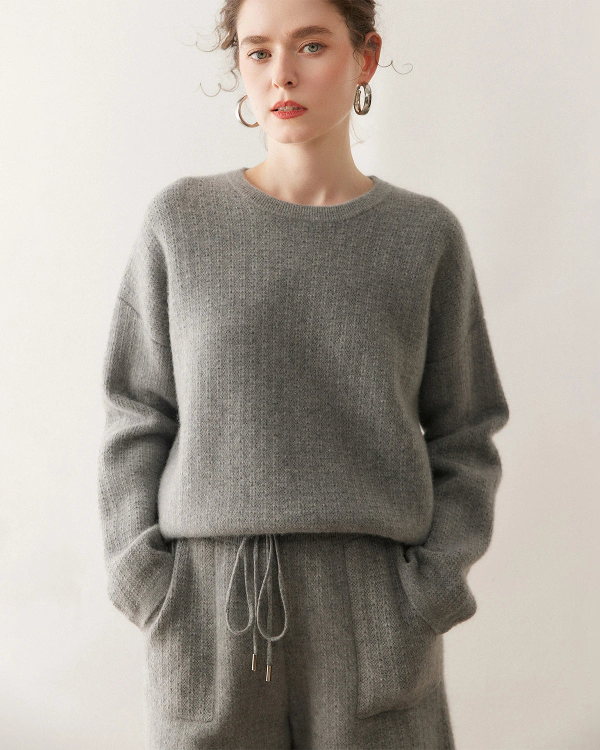 Designed for both lounging and light outings, this women’s cashmere set transitions seamlessly from home relaxation to weekend errands. The breathable wool-cashmere blend maintains gentle warmth without overheating, while the flexible knit construction moves effortlessly with your body. Ideal as a cashmere jogger set, knit sweater and shorts set, or cashmere set lounge piece, it delivers softness, functionality, and sophistication in one. Whether you’re styling it with sneakers for a sporty look or with boots for a refined finish, this versatile ensemble defines modern comfort.