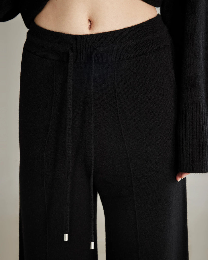 Luxuriously soft and relaxed, these wide-leg cashmere lounge pants offer ultimate comfort and effortless style. Featuring a drawstring waistband for a custom fit, they are perfect for cozy days at home or casual outings. The clean seams and high-quality knit ensure both durability and a sleek, modern silhouette.