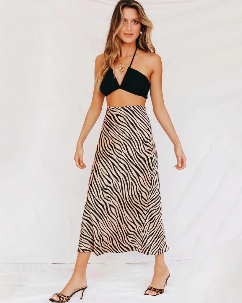 Crafted from luxurious 19 momme crepe de Chine silk, this Women's Zebra Print Midi Skirt combines bold style with timeless elegance. The smooth, lightweight fabric offers a graceful drape and all-day comfort, while the striking zebra print adds a touch of exotic flair. Featuring a high-waist design and flowing silhouette, this skirt is perfect for both casual and formal occasions. Pair it with a simple top for a chic look that transitions effortlessly from day to night.